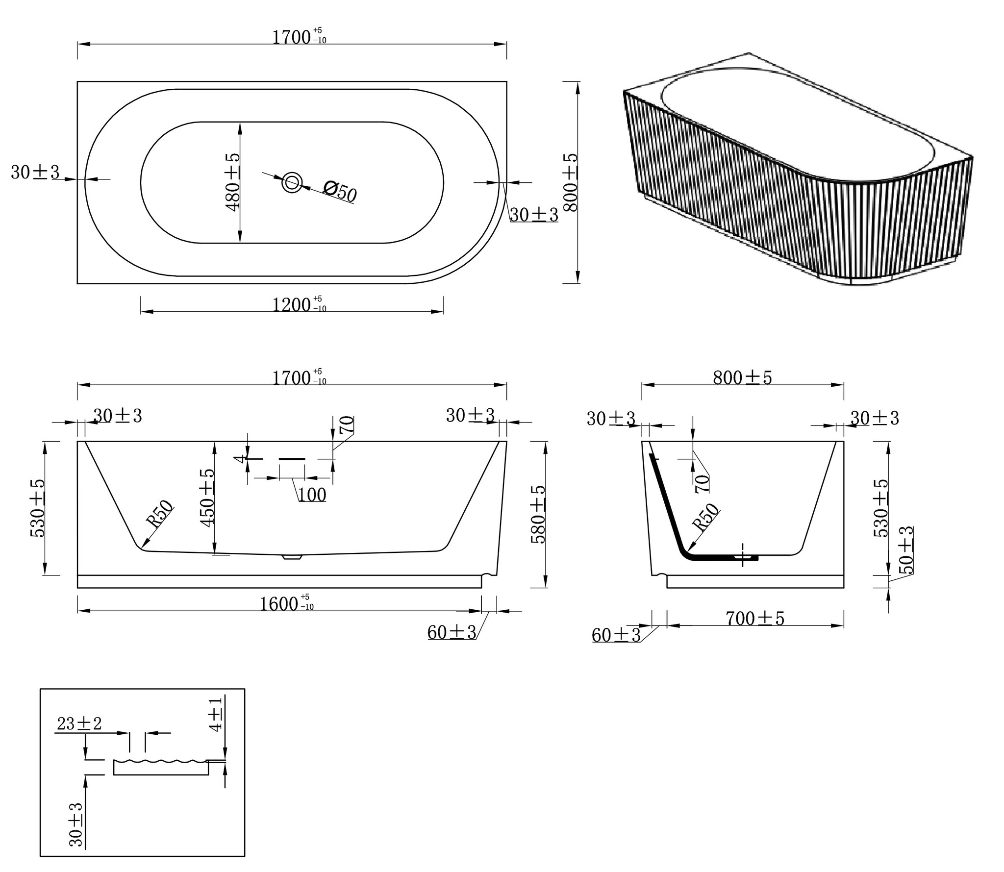 Verkrijgbaar als hoekbad of half vrijstaand bad, zodat het moeiteloos past in elke ruimte. De ribbelstructuur geeft het bad een trendy en originele uitstraling.