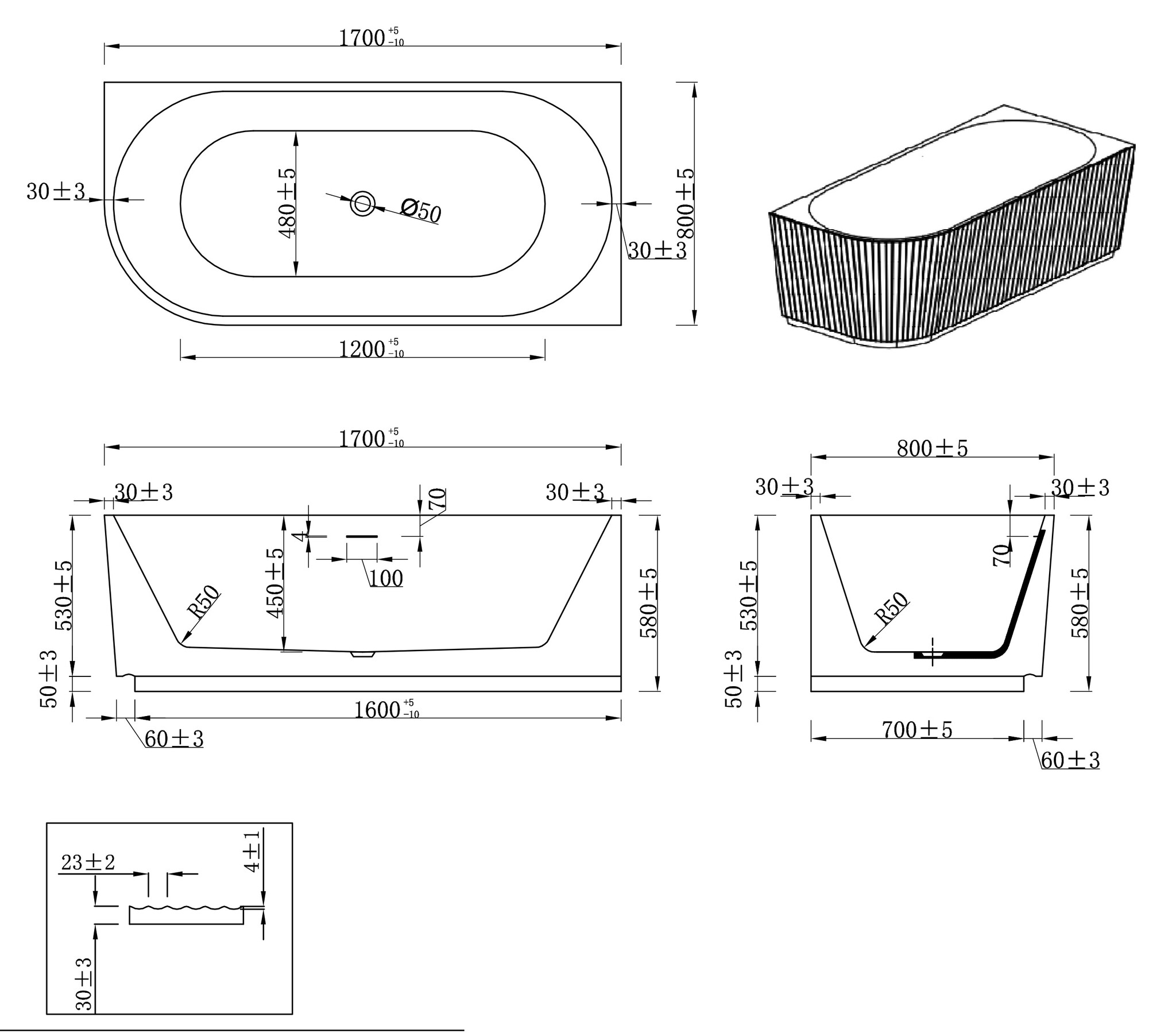 Verkrijgbaar als hoekbad of half vrijstaand bad, zodat het moeiteloos past in elke ruimte. De ribbelstructuur geeft het bad een trendy en originele uitstraling.