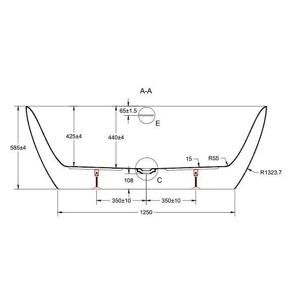 Vrijstaande duobad van 170 x 80 cm. De kleurcombinatie buitenzijde/binnenzijde is goud/wit glans. Door de schuine rugzijden kan aan beide kanten gezeten worden. De afvoer en overloop zijn daarvoor in het midden geplaatst. Het bad is gemaakt van sanitair-acryl versterkt met meerdere lagen glasvezel. Hierdoor is het bad stevig, vormvast en toch licht van gewicht. Het acryl voelt relatief zacht en warm aan en is onderhoudsvriendelijk. De onderzijde heeft voorgemonteerde stelpoten en een open ruimte voor sifon en afvoerslang.